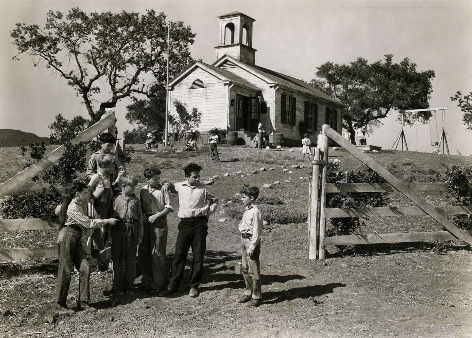 Boy meets horse, boy loses horse, boy miraculously gets horse back - stories like these were endlessly cropping up in films of the late 1940s. "National Velvet" and "My Friend Flicka" started a chain reaction that continued on until the early 1950s. Most of these follow-ups were just average productions, but The Red Pony ( 1949 ) was a stand out. Beautiful Technicolor and big name drawing actors like Robert Mitchum and Myrna Loy helped draw the adult crowd to this pleasing family film. A young Peter Miles plays Tom Tiflin, the pony's proud papa, and here we see him getting a teasing from his fellow schoolmates. He probably should run to teacher for help, but won't, since she is played by the inimitable Margaret Hamilton.